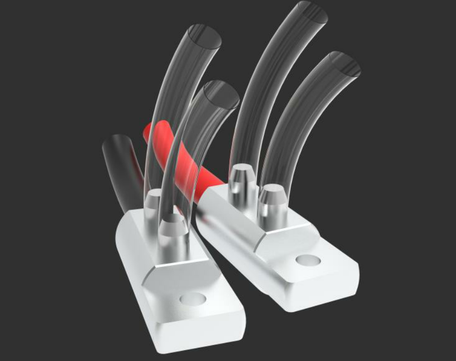 上圖中DC+、 DC-電極,均可構(gòu)成冷卻液進(jìn)、出回路,電極連接充電樁電源的正、負(fù)極。其上的進(jìn)、出液管連接液冷源。